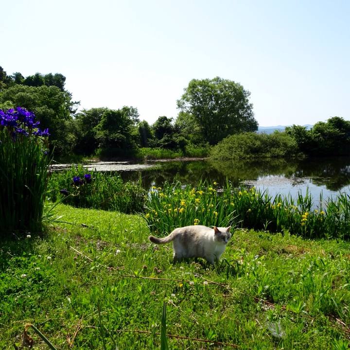 色々な花が咲いて新緑が綺麗な季節になりました☺️ #三毛猫