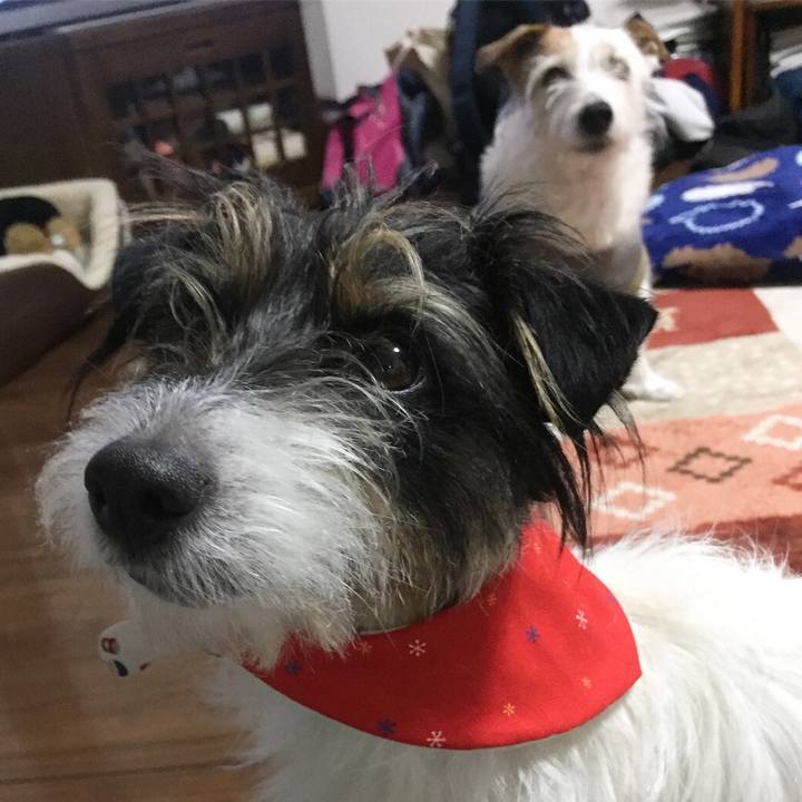 かーちゃんがバンダナ作った。色違いとかどーでも良いよ #心の声 難を逃れたもこ