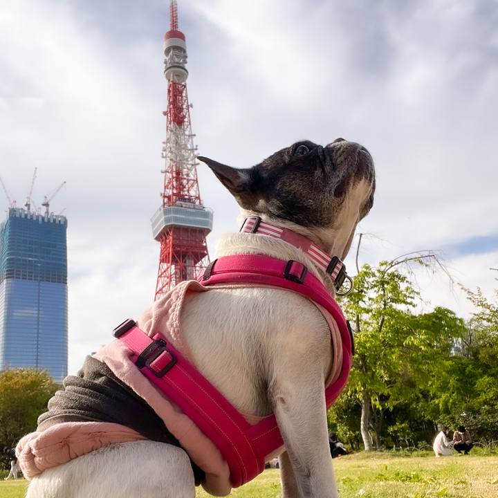 芝公園に行って東京タワーを背中から生やしたよ#フレンチブルドッグ#東京タワー