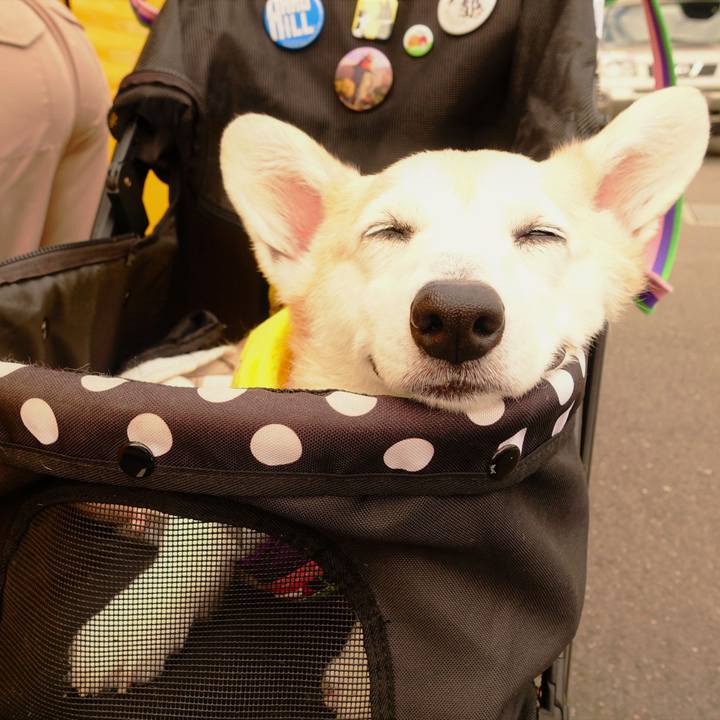 夫カメラ/車に戻ってきました🚌ニッキーひたすらおねむさんです💤 #コーギー