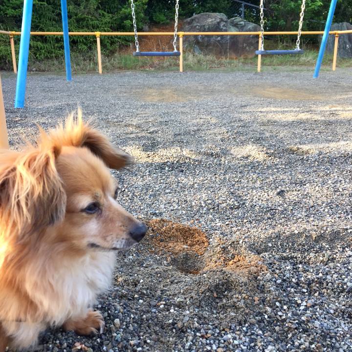 #チワックス#ミックス犬#あさんぽ ブランコの前に落とし穴を掘ったのは誰?🐢