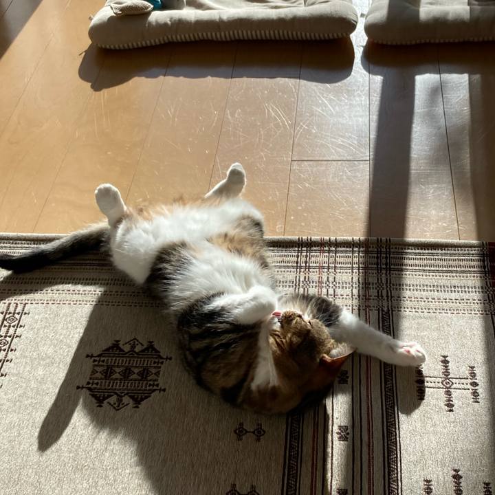 早朝の日光浴を愉しむ朝くん