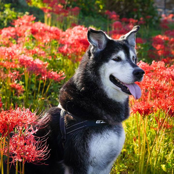 踏まないように気をつけて📸 #彼岸花#笑顔#秋#雑種犬