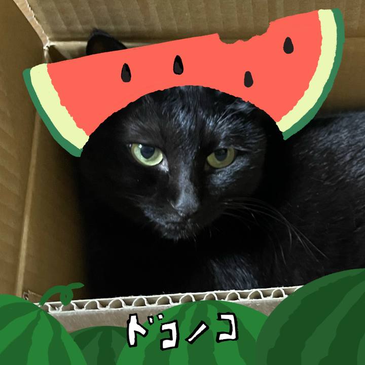 #今月のフォトフレーム スイカの帽子 おいしそうだわ #黒猫