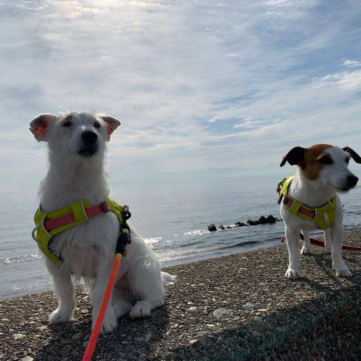 おはようー!🐶🐶 #うみ散歩 #キラッキラ