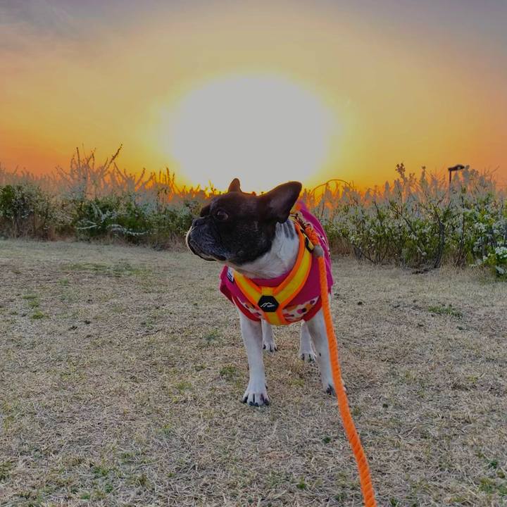 夕陽なんだけど💦UFOみたい#フレンチブルドッグ#さんぽ#夕方んぽ#二子玉川公園