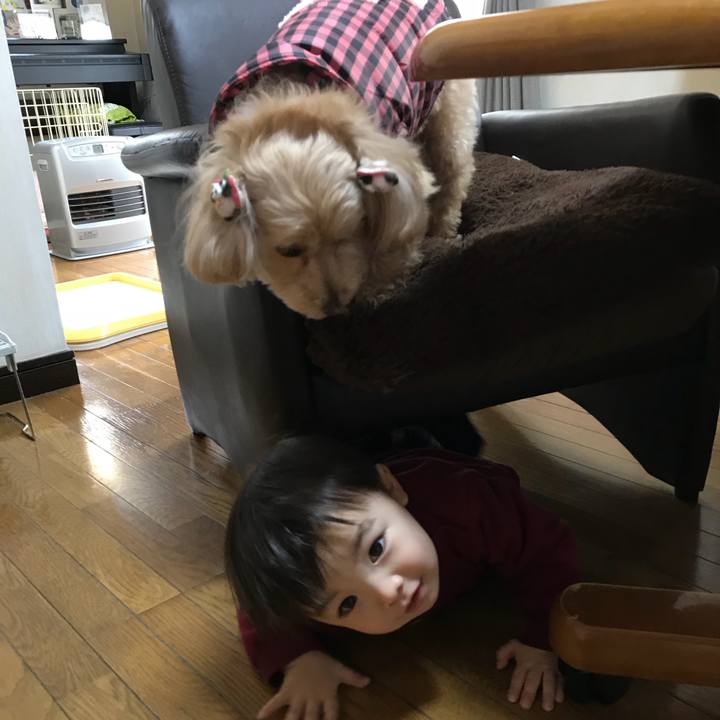 かくれんぼ❣️ みーつけた🐶 #おとぼけ部 #デカイ部 #よだれマン #マルプー