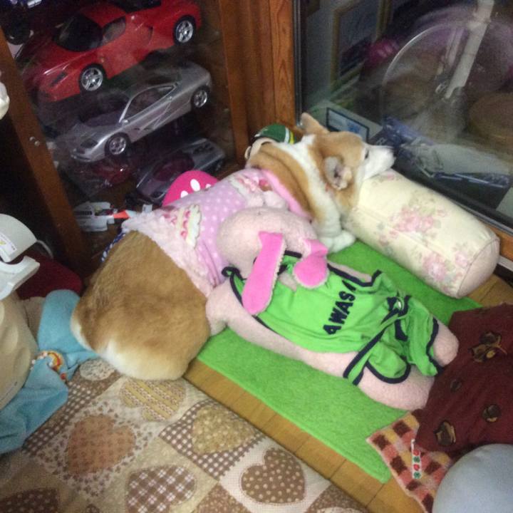 おくつろぎ中💤夕方グルーミングでした✨ #コーギー #トリミング #ぬいぐるみ
