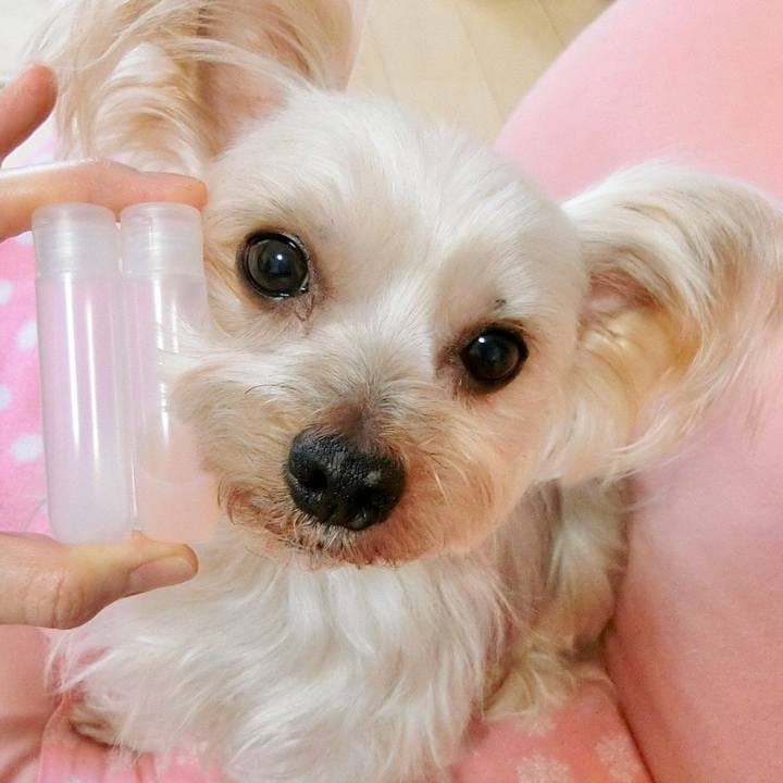 犬写真載せたいゆえのサイズ比較 #いぬ句 #ヨーキー ハンドソープを入れる容器