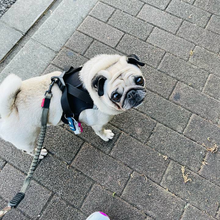 帰ろっかって聞いたらこれ いやいや1時間経ったよ? #パグ #あさんぽは時間ない