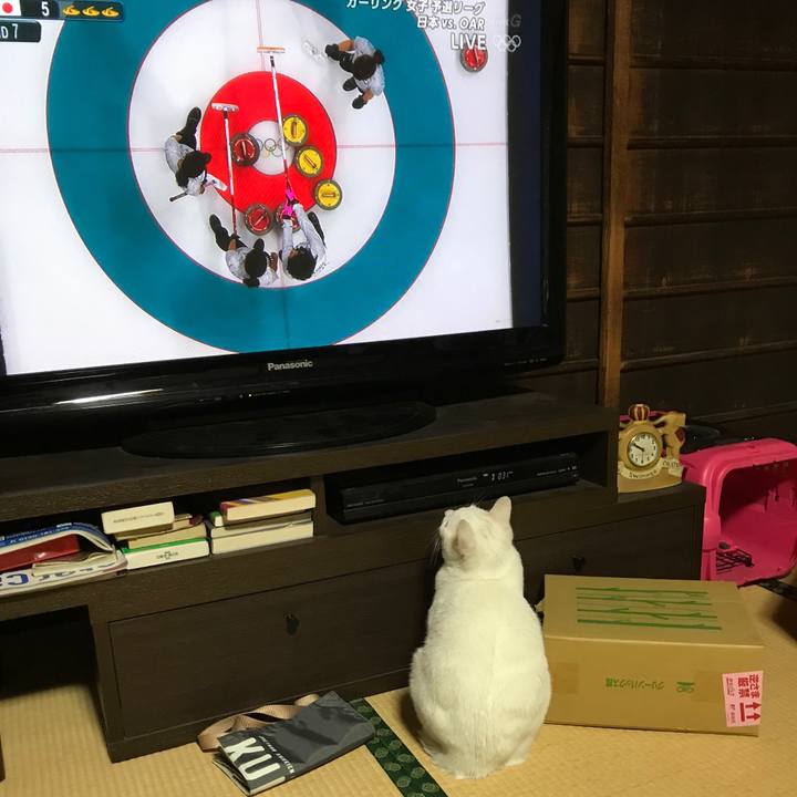 カーリングにクギづけ #白猫 #オリンピック#テレビ好き