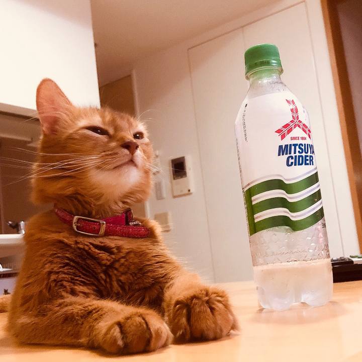 うにゃーあちゅいな サイダーのおいちい 季節になったちゃ〜🐱💕