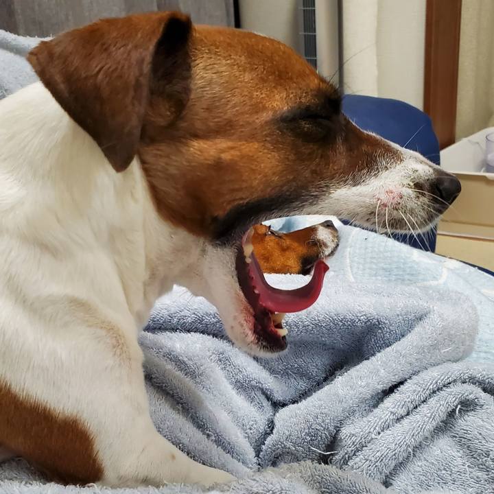 口からあんこ #あくび #トリックアート #多頭飼い #ジャックラッセルテリア