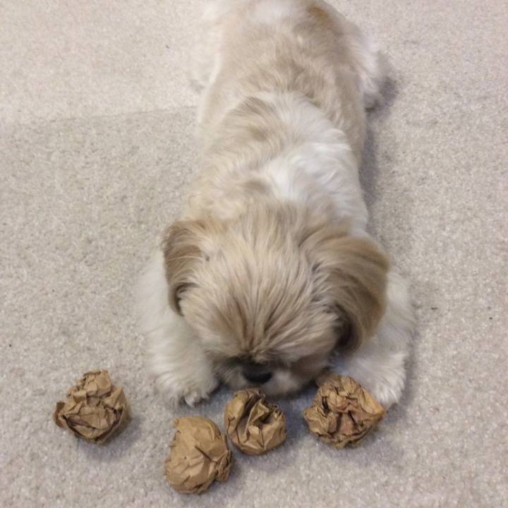 やっぱさっきのは止めてこっちか? #シーズー #考える犬 #ポプラ社#おもちゃ