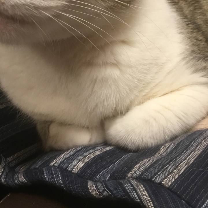 居座る。 胸毛と手。