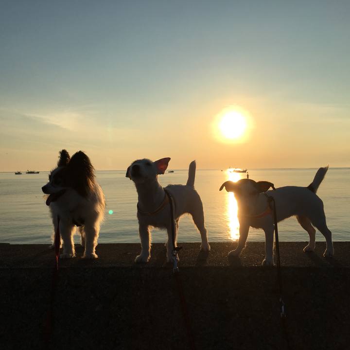 おはよう☀ 暑いけどキラキラパワーお届け #あさんぽ #jrt #パピヨン
