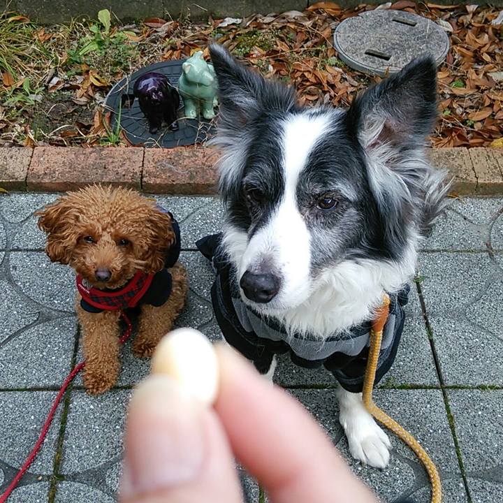 ボーロ♡ボーロ♡ #多頭飼い #なかよし #ガン見 #老犬 マテだよ~(^^;)