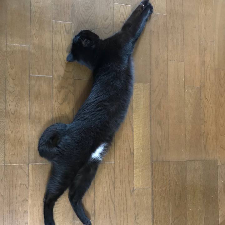 暑いから 伸びたままで 止まってる #黒猫 #ねこ句#ネコアザラシ隊