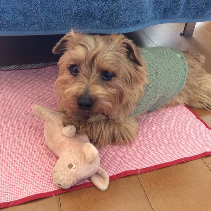 日課、豚さん舐め舐め#ノーフォークテリア #チンピラ #短足部