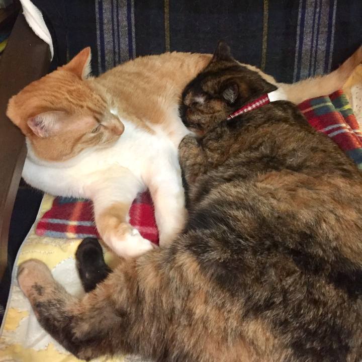 バスクはモッフーに顔を埋めて、ブランはバスクのお腹でグーパー。#仔猫返り