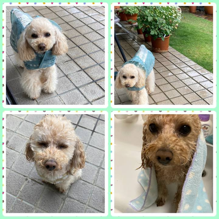 雨の中カッパで出たものの やっぱりイヤ…そうしたら濡れて 🛁された🐶 #トイプー