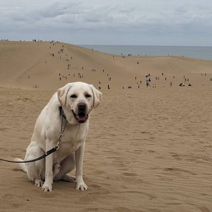 鳥取砂丘に行って来たよ。 砂の山に登って砂いっぱい食べたよ🐶#ラブラドール