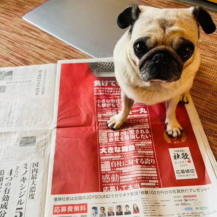 新聞をめくらせない作戦 #パグ #最近毎朝バトル
