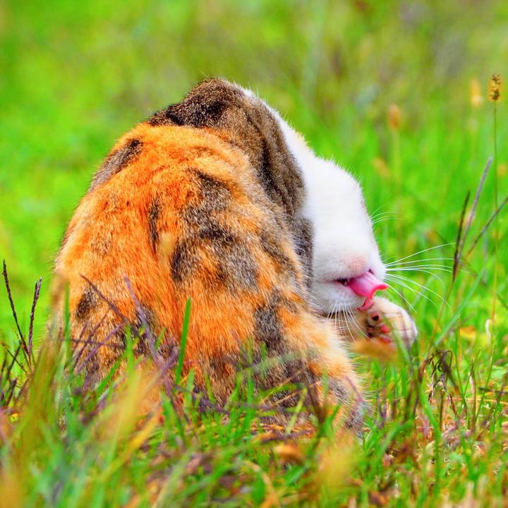 毛繕いは入念に✨ #牛小屋猫 #三毛猫 #毛繕い #ペロ