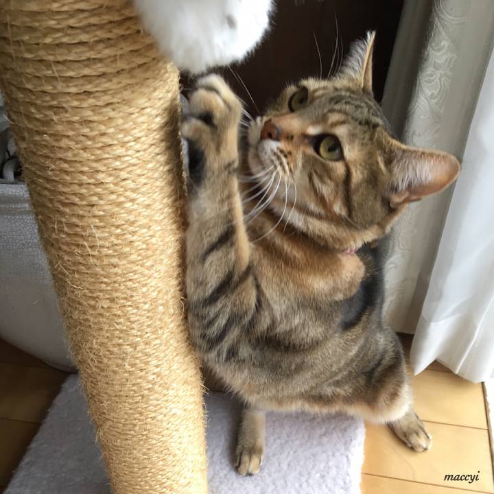 #ねこ句#春#ねこ人類#キジトラ#マンチカン 四月来る 本腰入れ シェープアップ