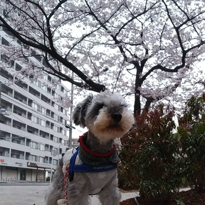 桜ん歩 花よりだんご ママのこと #いぬ句 #シュナウザー