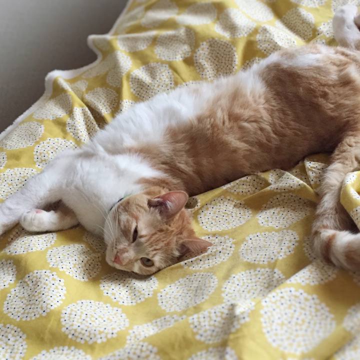 寝てるときを狙って身長を測ろうとしたけど。どこからどこまで? #茶トラ白 #身長