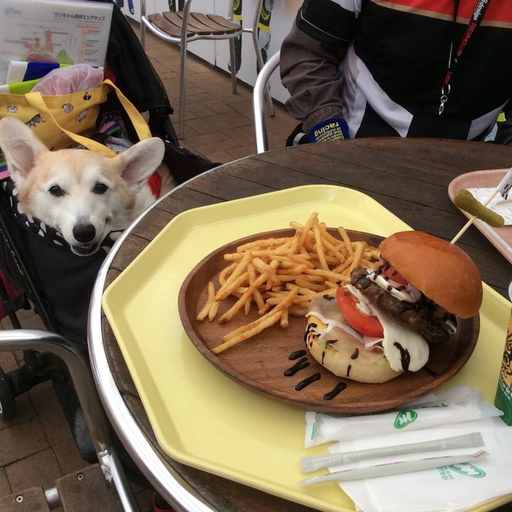朝ごはんは『TAKAのトロフィーバーガー30』🏆✨ #コーギー #お出掛け