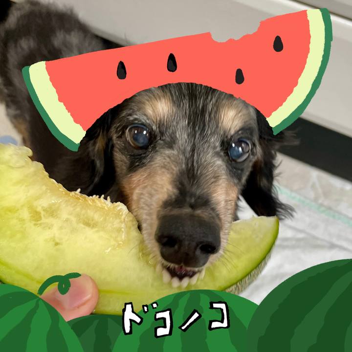 #今月のフォトフレーム スイカにメロンに忙しいワン🐶 #メロメロメローン🍈