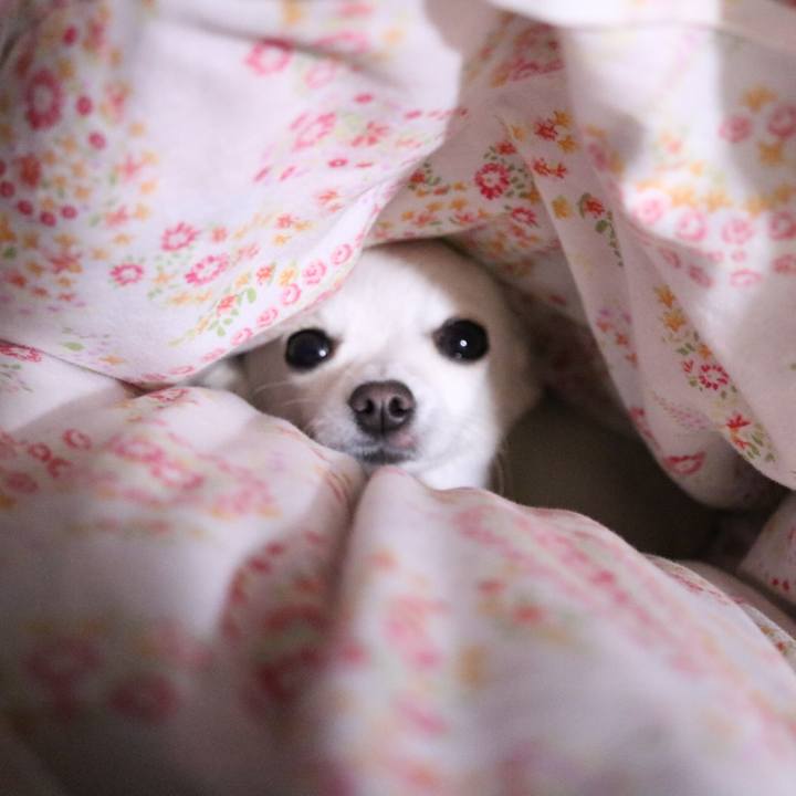 お気に入りの秘密基地。 #チワワ#お布団穴蔵#寝てないよ#皆の声を聞いてるの
