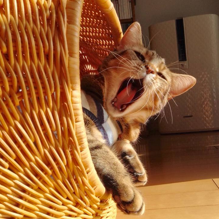 ふぁ〜ぁ〜極楽カレンダー参加にゃ #あくび#cat#ねこ#猫#茶トラ#マンチカン