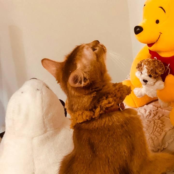 プーさん❗️どっちが背が高いちゃ🐱❓ ちゃちゃちゃんかな🐻 にぎやかだ😁