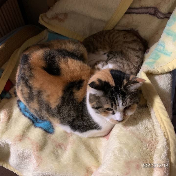 「しましまの子と白い子が日替わりなの」 #朝寝 #末っ子改め姉御
