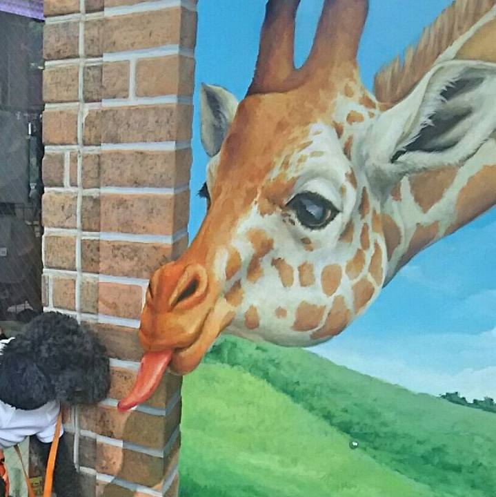 談合坂SAキリンに舐められる私 #お出かけ #休憩 #あずきです#旅は犬連れ