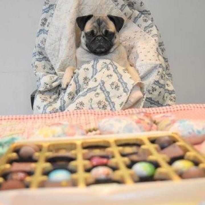 食いしん坊 でも食べられないよ チョコレート💓 #パグ #いぬ句