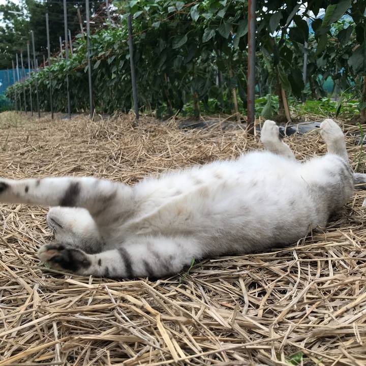 うにょ〜〜ん🎶 #畑のガードニャン #鯖組 #サバトラ #伸び #ストレッチ