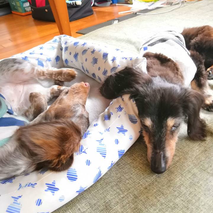クロール徘徊の末わごむの隣に落ち着く💤💤💤 #仲良し寝んね