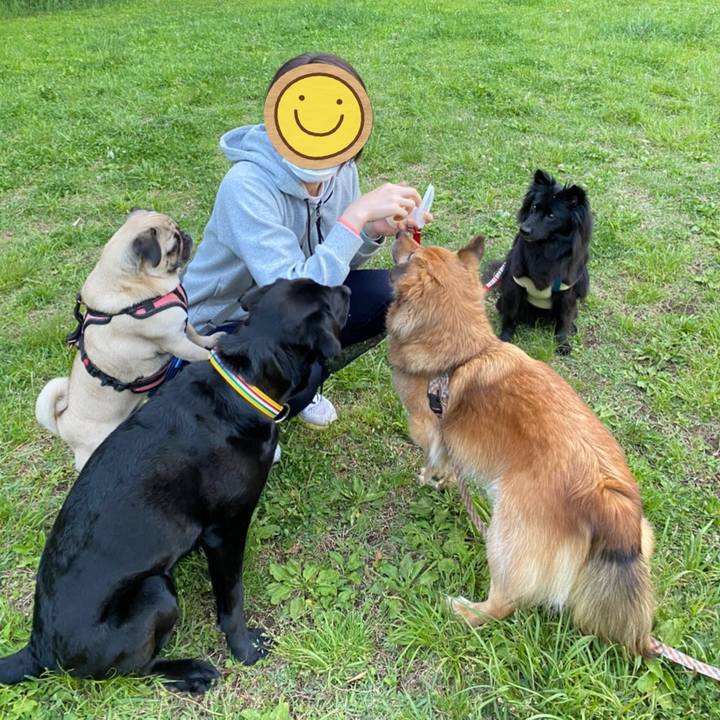 みんな元気だったー? ほらおいも持ってきたよー☺️💕 #地元 #わんこ仲間