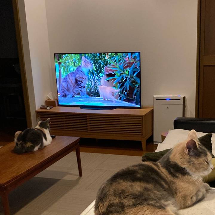 テレビっ子と興味ない子 #三毛猫
