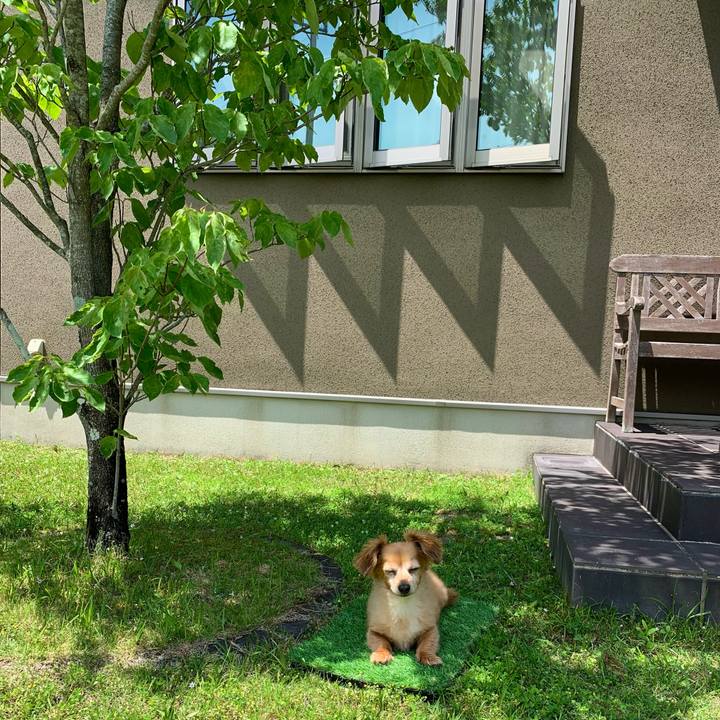 半身日光浴🐾ハナミズキの木陰にて🌳 #チワックス#ミックス犬#コゲ活#チーム短足