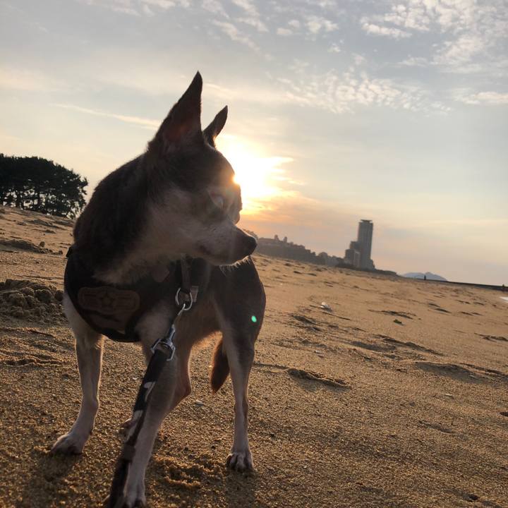 夕陽🌇🌅が沈む前にお散歩 風が気持ちよかった〜 #チワワ #ジャスミン #秋色