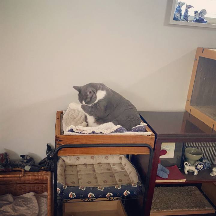 箱入りねむねむ〜ん🗃💤 #灰白 #ハチワレ