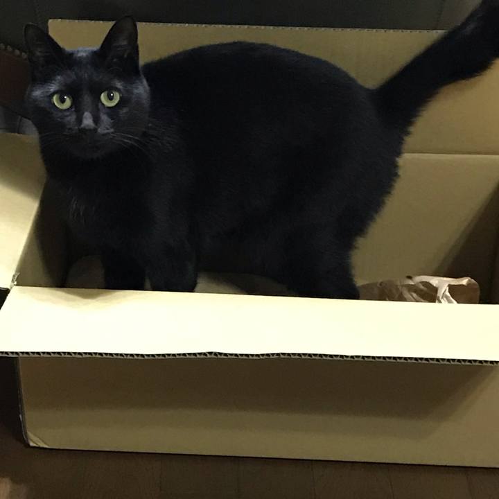 朝も夜も箱入りなのね。よくあきないねー#黒猫 #箱入り