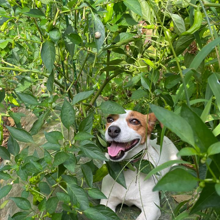 シシトウ畑からこんにちは🐶❤️ #ジャックラッセルテリア #JRT #夏野菜