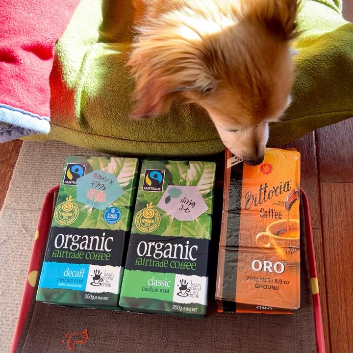 姉から送られてきたコーヒー☕️🇦🇺👧🏼 どれにしようか福助に決めてもらう🐾