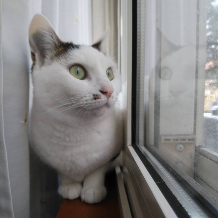 ももは下から#ニャルソック するにゃ#業務中#カーテン#窓